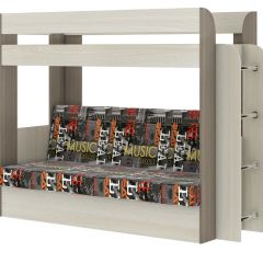 Кровать 2-х ярусная с диваном Карамель 75 (Музыка) Ясень шимо светлый/темный