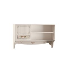 Детская модульная система "Флоренция" привлекает внимание классической геометрией и узорчатой фотопечатью. Фасады дополнительно украшены декоративным профилем. Картину дополняют изящные металлические ручки в цвете "старое золото".