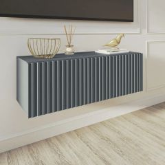 Благодаря своей компактности тумба под ТВ подвесная поможет сэкономить пространство, избежать ощущения загромождённости гостиной, спальни или детской комнаты, а рифлёный фасад будет акцентировать