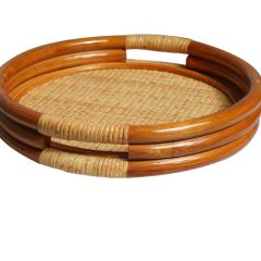 Комплект из натурального ротанга, состоящий из двух кресел и круглого столика с плетеной столешницей. Стекло входит в комплект.
