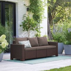 Комплект мебели Corfu Set – это самый дешевый диванный комплект мебели из пластика под искусственный ротанг производства фирмы Keter Group, при этом он обладает отличным качеством и стильным дизайном.
