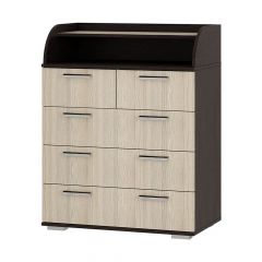 Комод «Стандарт № 1» отличается своей практичностью. Наряду с выдвижными ящиками, он имеет открытую полку, расположенную сверху, значит у вас появится дополнительное место для хранения вещей. Для облегчения открывания нижние выдвижные ящики оснащены одновременно двумя ручками геометрической формы, верхний – разделен на две секции для более удобного хранения.